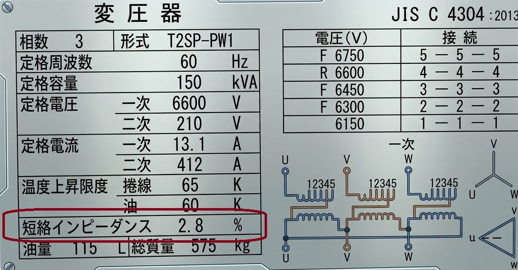 %Zが小さいほど電圧降下が小さく、変圧器の性能は良い反面、その分だけコストもかかります。また、短絡事故が発生するとより大きな電流が流れます(その分、事故電流を遮断するための遮断器もより高性能なものが必要となる)。よって、変圧器の%Zは単純に小さいほど良いわけでなく、利用場所に応じて適切に選定することが大切です。
