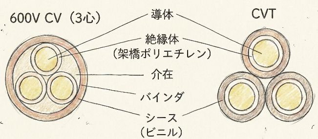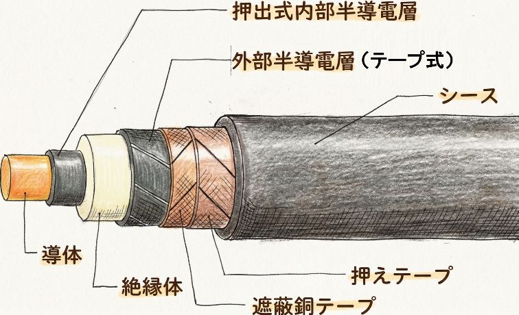 電験3種(電力分野)で出題される電力用ケーブル(CV、CVT、OF、POFなど)の違いを詳しく解説します。
