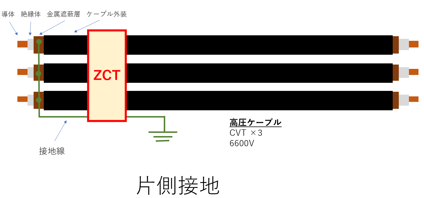【高圧ケーブルの金属遮蔽層とA種接地】