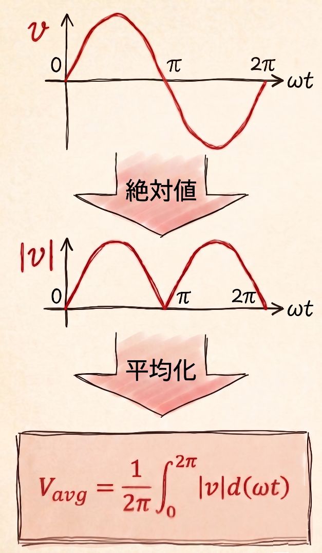 交流電圧の平均値が「最大値の0.637倍」となる理由