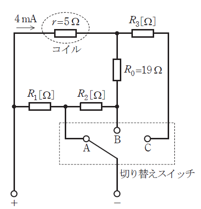 条件II:切り替えスイッチをBにしたときは、最大 $100\text{mA}$ の直流電流を測定できる。