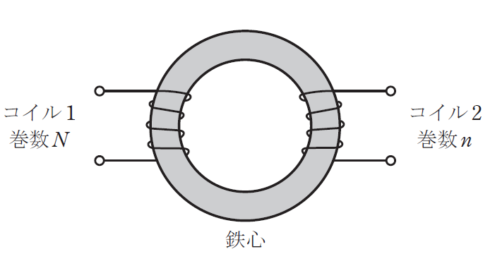 ただし、鉄心は均一で一定断面積をもち、コイル及び鉄心の漏れ磁束はなく、鉄心の磁気飽和もないものとする。